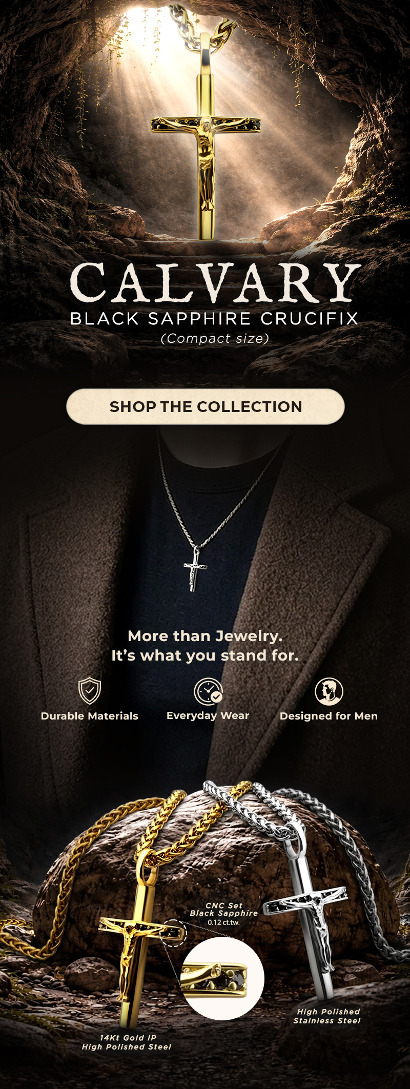 A Symbol of Faith, Refined in Sapphire – Calvary Crucifix & More at AJA
