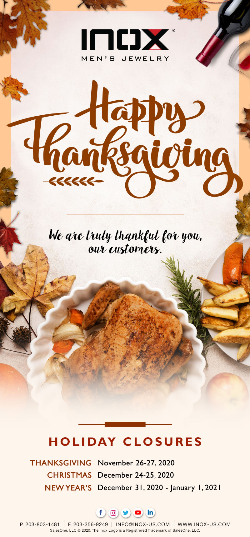 Newsletter Happy Thanksgiving from our family to yours. November 20, 2020INOX Men's JewelryComment(0)