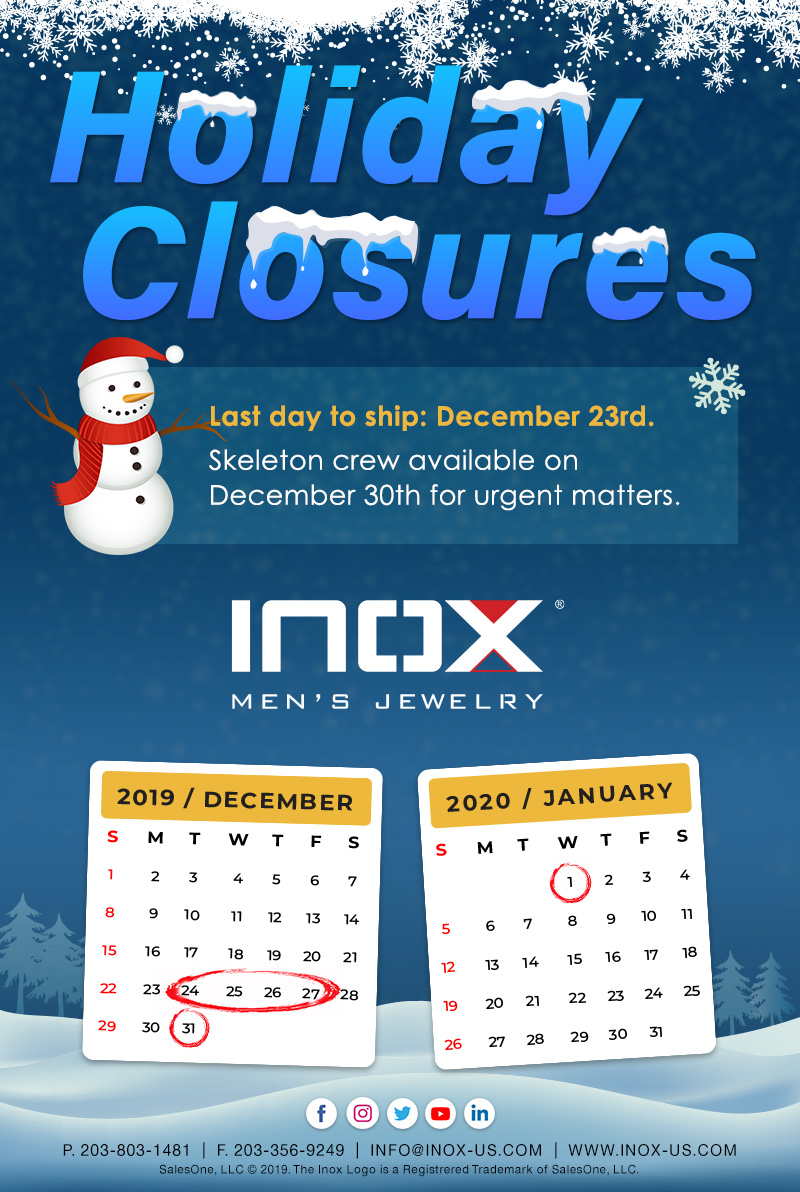 Newsletter There’s still time…Holiday Closure Schedule December 17, 2019December 17, 2019INOX Men's JewelryComment(0)
