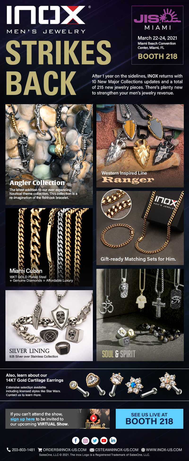 Newsletter INOX Strikes Back! 10 New Men’s Collections to see at JIS Miami. March 18, 2021INOX Men's JewelryComment(0)