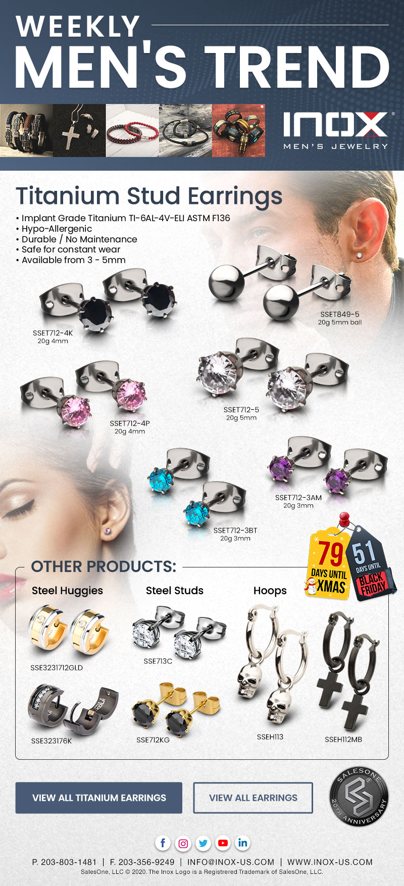 Newsletter INOX Weekly Men’s Trend Jewelry – Titanium Studs. October 2, 2020October 7, 2020INOX Men's JewelryComment(0)