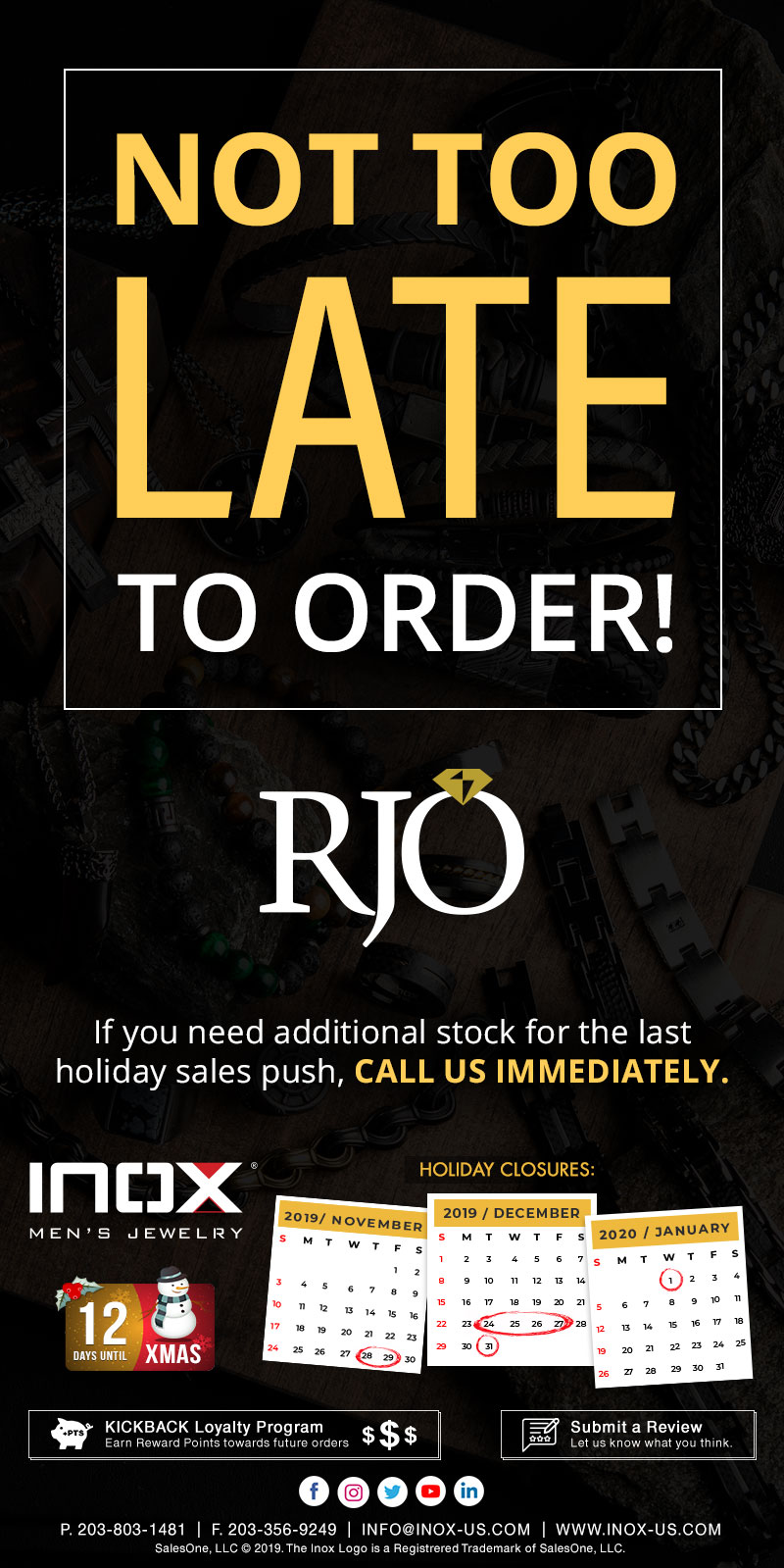 Newsletter Do you need additional stock for the last holiday sales push? Call Us! December 13, 2019INOX Men's JewelryComment(0)
