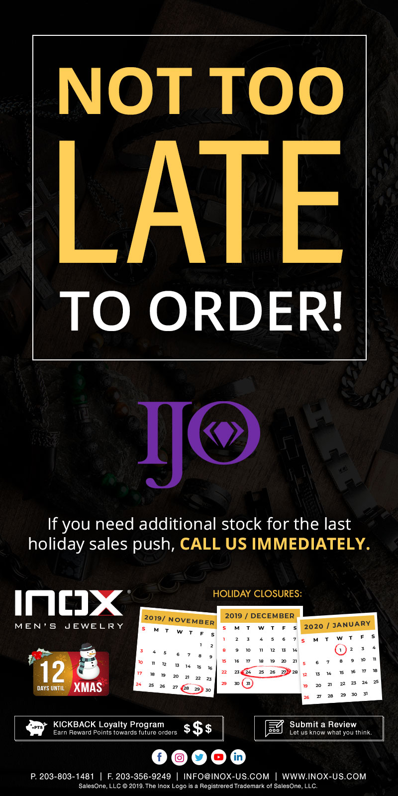 Newsletter NOT TOO LATE to order INOX for holiday sales push. Call Us! December 13, 2019INOX Men's JewelryComment(0)